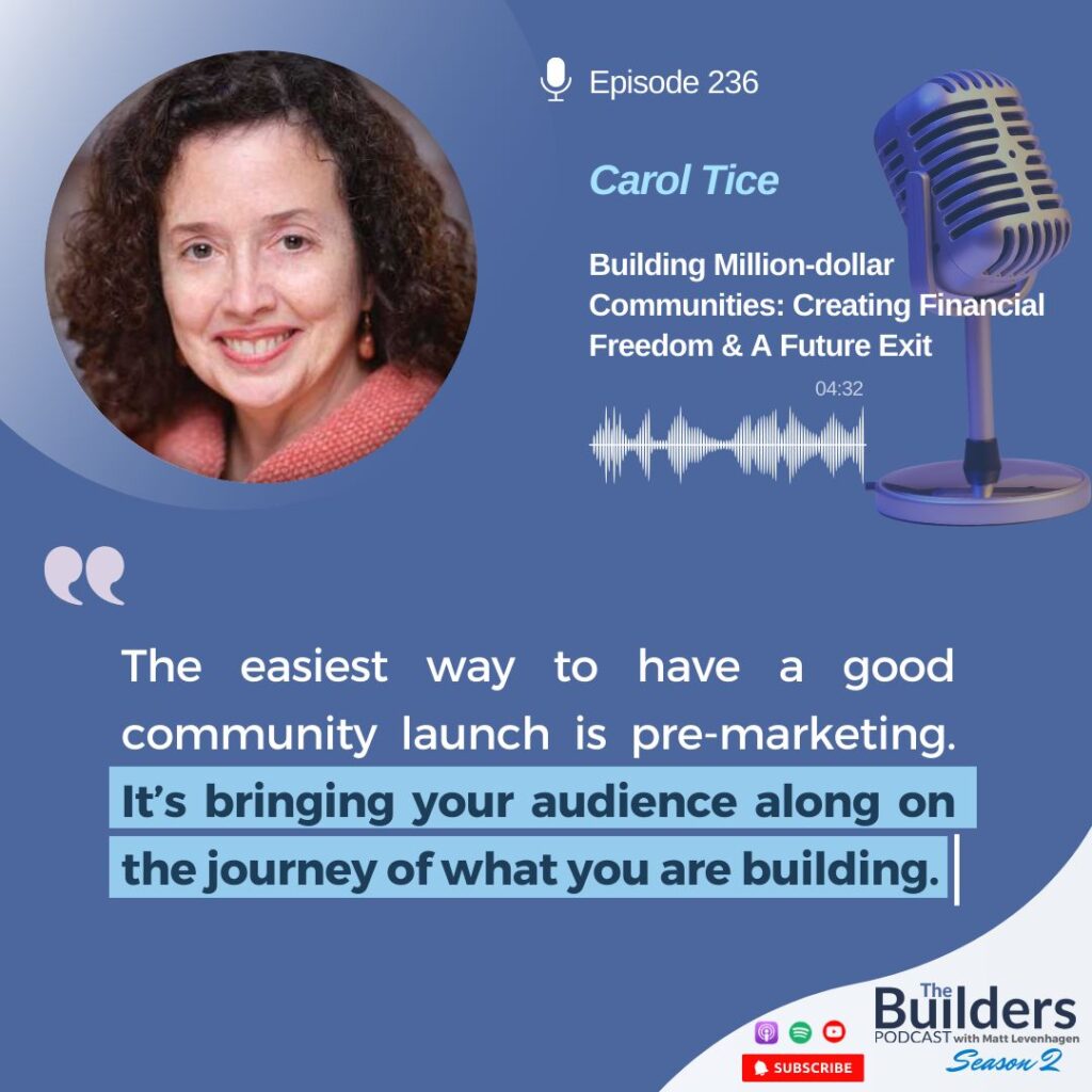 In this episode of The Builders Podcast, host Matt Levenhagen converses with Carol Tice, a digital nomad and expert in developing thriving online communities. Delving into the intricacies of starting and growing paid communities, Carol shares her journey from freelance writer to the founder of a successful online business.